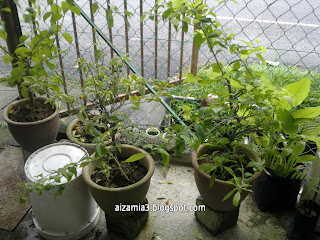 •  Pokok limau kasturi hubby dah jadi hidup segan mati tak mahu aku tengok..
