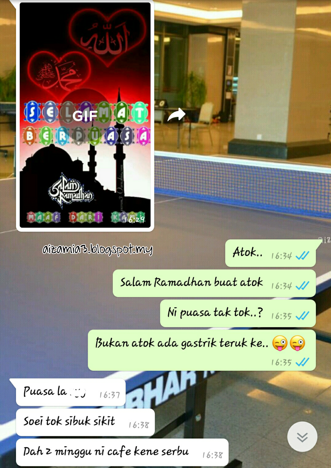 Ramadhan kali ni tak banyak beza macam sebelum ni. Bersahur dan berbuka dengan anak-anak di rumah. Setakat ni peluang nak berbuka puasa di kampung belum berjaya lagi.. lebih-lebih lagi nak makan free dekat cafe Atok Muar.. ekekeke..